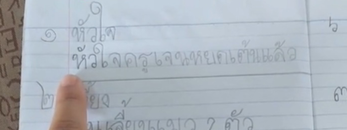 ผู้ใช้ TikTok @janejiranakleueng ได้เผยภาพการบ้านวิชาภาษาไทย ที่ครูให้โจทย์นักเรียนแต่งประโยคตามคำที่บอก มีทั้งหมด 5 ข้อ พอได้อ่านของนักเรียนคนหนึ่ง แค่ประโยคแรกถึงกับอยากให้ครูตายเลยทีเดียว ชาวเน็ตแซวว่า สงสัยต้องทำประกันชีวิตให้ครู ตายซ้ำตายซ้อนไปอีก