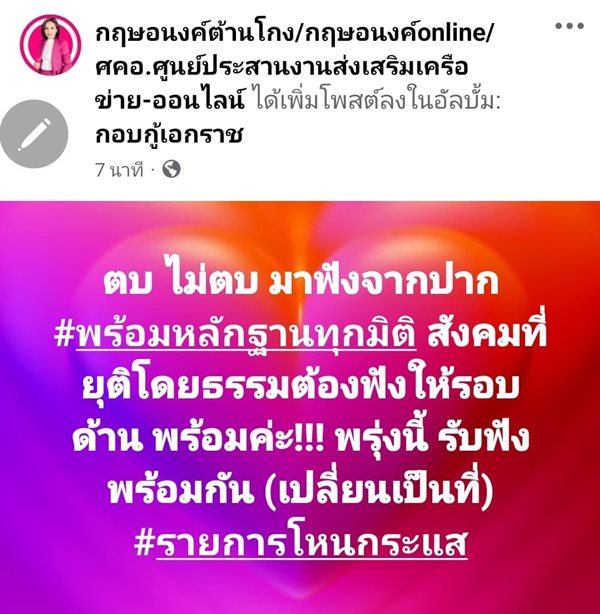 ภาพจาก กฤษอนงค์ต้านโกง/กฤษอนงค์online/ศคอ.ศูนย์ประสานงานส่งเสริมเครือข่าย-ออนไลน์