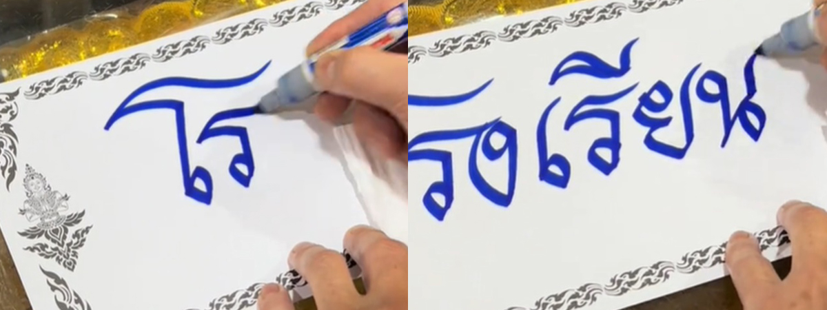 ชาวเน็ตตาลุกวาว เขียนชื่อโรงเรียนด้วยปากกาเคมี ลายมือสวยแบบไม่พึ่งลายเส้น