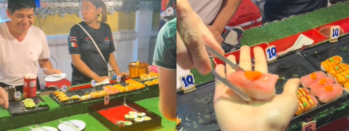 ผู้ใช้ TikTok @anatha_travel ได้เผยภาพสาวคนหนึ่ง มาร้านโอมากาเสะตามที่เพื่อนนัดไว้ แถมยังบอกว่าจะเลี้ยงเธออีกด้วย พอดูราคาแล้ว เป็นโอมากาเสะแบบย่อมเยาว์ ร้านอยู่ในตลาดนัด คำละ 10 บาท บอกได้เลยว่า งานนี้มีอิ่มยันหลักร้อยแน่ ๆ