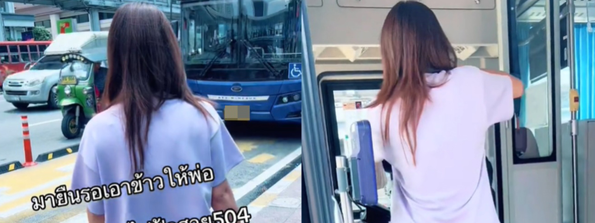 ผู้ใช้ TikTok @jinnieeverything ได้เผยภาพสาวคนหนึ่ง ซื้อข้าวเพื่อเอามาให้พ่อ ที่ทำงานเป็นคนขับรถเมล์ ซึ่งยืนรอเอาข้าวให้พ่อทุกวัน ไม่ได้อยู่บ้านด้วยกันแล้ว เลยใช้โอกาสนี้เจอกัน แม้เป็นช่วงเวลาสั้น ๆ แต่มีความสุขมาก กลายเป็นโมเมนต์ที่ชาวเน็ตต่างอบอุ่นหัวใจทั้งโซเชียล