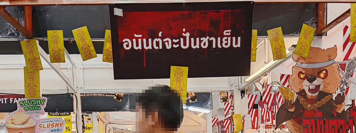 เฟซบุ๊ก รำพันมนต์ สัณฐิติวิฑูร ได้เผยภาพบรรยากาศงานฮาโลวีน ที่ร้านต่าง ๆ มาเปิดขายของให้ลูกค้ามาซื้อ ความพีคอยู่ที่ร้านชาเย็นร้านหนึ่ง เห็นชื่อร้านที่ตั้งแล้ว บอกได้เลยว่า ทำนองมาแน่นอน อ่านแบบปกติไม่ได้อีกต่อไป กลายเป็นไวรัลที่ชาวเน็ตแห่แชร์ถล่มทลาย