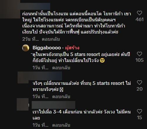 ต่อมามีบางคอมเมนต์เข้ามาให้ข้อมูลเพิ่มเติมว่า ปัจจุบัน Botanica เขาใหญ่ ไม่ใช่โรงแรมแล้ว ปัจจุบันเป็นคอนโดมิเนียม เจ้าของพักอาศัยเอง ไม่ได้ทำเป็นโรงแรมแล้ว และไม่ได้เป็น โรงแรมร้างอย่างที่โพสต์ ตอนนี้เปลี่ยนนิติ กำลังอยู่ในช่วงปรับปรุง อีกคอมเมนต์ยืนยันว่า ยังมีคนอยู่ ตนพักอยู่ที่นั่นชั้น 2 ทุกวัน กำลังเริ่มปรับปรุงกิจการ เพิ่งเปลี่ยนนิติ ใจเย็นครับ ไม่มีผี มีแต่ลิงกับช้าง