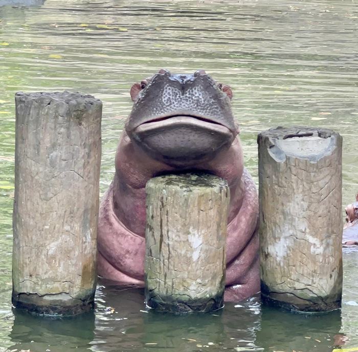ขึ้นชื่อว่าเป็นอีกหนึ่งตัวตึงที่ได้รับความรักจากโซเชียลเช่นกัน สำหรับ ขาหมู ฮิปโปแคระแห่งสวนสัตว์เขาเขียว ที่แม้ขนาดตัวจะใหญ่กว่าไม่อยู่ในวัยที่เด้งเหมือนน้องหมูเด้ง แต่พี่ขาหมูก็พร้อมมาสร้างตำนานเช่นกัน