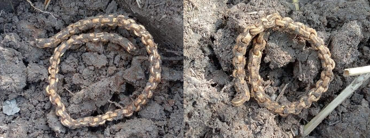 เฟซบุ๊กเพจ เด็กสร้างบ้าน ได้โพสต์ในกลุ่ม ไอเดียโคกหนองนา ซึ่งเป็นภาพตอนขุดปูอยู่ที่ทุ่งนา หลังจากเกี่ยวข้าวเสร็จ หาปูสักตัวเพื่อเอามาทำเป็นกับข้าวกิน ขุดไปขุดมา สิ่งที่เจอดันไม่ใช่ปู กลับเป็นของล้ำค่าที่มีคนเอามาฝังไว้ พอมีชาวเน็ตคอมเมนต์ว่า ลองขุดให้ลึกลงไปอีกนิดนึง เผื่อเจอเจ้าของ รู้สึกขนลุกอย่างบอกไม่ถูก