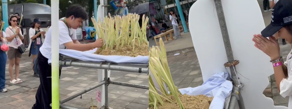 ผู้ใช้ TikTok @thisiscatradio ได้เผยภาพบรรยากาศงานคอนเสิร์ต CAT Expo ครั้งที่ 11 โดยก่อนเข้างานมีการจัดซุ้มปักตะไคร้ให้คนดู เพื่อไม่ให้เกิดฝนตกระหว่างดูคอนเสิร์ต งานนี้ผู้คนพากันปักตะไคร้ให้พรึ่บ ฝนไม่ตกลงมาแน่ ๆ