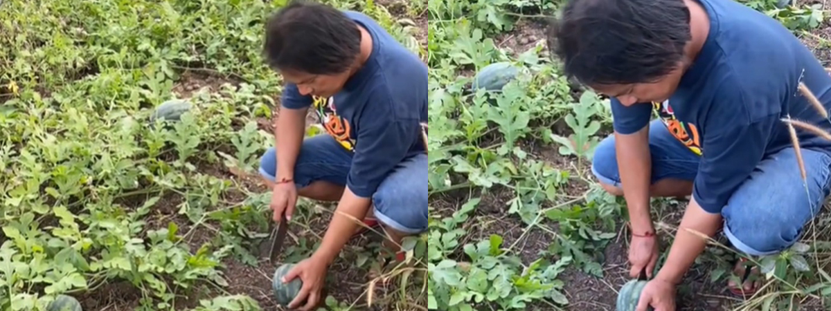 ผู้ใช้ TikTok @nisarat_88 ได้เผยภาพพ่อค้าท่านหนึ่ง ทำการเหมาซื้อสวนแตงโมในราคา 460,000 บาท โดยเจ้าของสวนบอกให้ลองผ่าดูเนื้อแตงโม พร้อมเสริมอีกว่า รับประกันความแดงทุกลูก พอลองผ่าดูเจอแต่เนื้อขาว กว่าจะเจอเนื้อแดงก็ปาไปลูกที่สี่แล้ว จนชาวเน็ตเข้ามาแซวว่า จะแดงกี่โมง