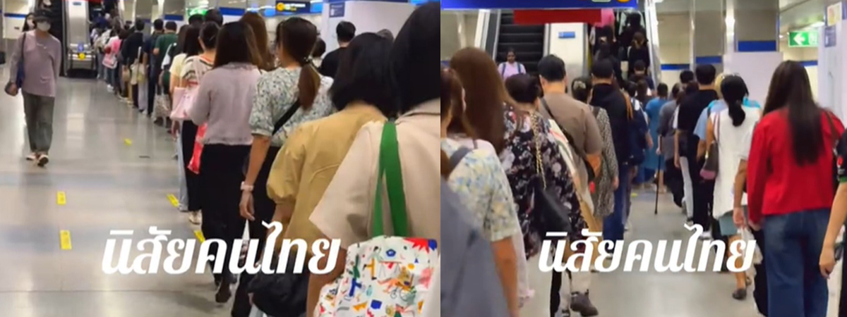 ชื่นชมกันทั้งโซเชียล ขึ้นรถไฟใต้ดิน เห็นคนไทยต่อแถวขึ้นบันไดเลื่อนเป็นระเบียบ