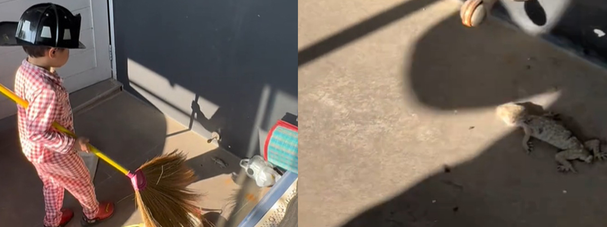 ผู้ใช้ TikTok @bossberrybaew ได้เผยภาพหนูน้อยคนหนึ่ง รับบทเป็นฮีโร่ประจำบ้าน หยิบไม้กวาดและที่โกยขยะ กำจัดตุ๊กแกให้ออกไปจากบ้าน ในขณะเดียวกันคนในบ้านพากันหนีเข้าบ้าน พ่อนี่ไปก่อนใครเพื่อนเลย ชาวเน็ตชื่นชมในความกล้าหาญของน้องทั้งโซเชียล