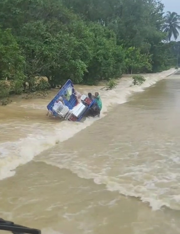 TikTok @mindtrends มีการลงคลิปคุณลุงขี่ซาเล้งในพื้นที่ จ.นราธิวาส ทันใดนั้นเอง น้ำก็ซัดมาจากเบื้องหน้า จนรถซาเล้งเสียหลักไถลคว่ำข้างทาง จมหายไปกับสายน้ำ ข้าวของที่อยู่ในรถอยู่ในสภาพพังยับเยิน คนที่ขับตามหลังก็ต้องรีบไปช่วยดึงลุงขึ้นมาได้