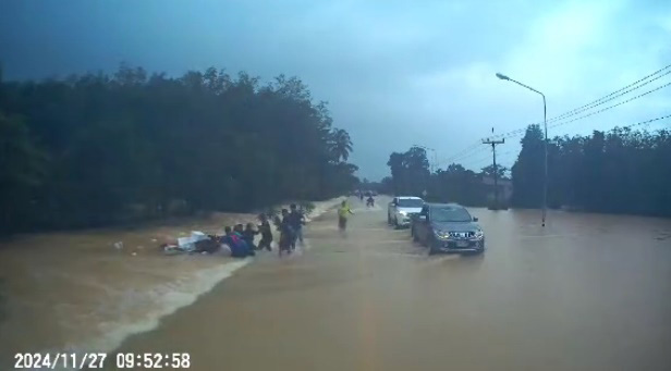 วันที่ 28 พฤศจิกายน 2567 เรื่องเล่าเช้านี้ รายงานว่า ช่วง 3-4 วันที่ผ่านมาเกิดเหตุฝนตกหนักที่พื้นที่ภาคใต้ ส่งผลให้มีน้ำป่าไหลท่วม อ.โคกโพธิ์ จ.ปัตตานี อย่างฉับพลัน ตั้งแต่คืนวันที่ 26 พฤศจิกายน มีความสูงเกือบ 1 เมตร ทำให้โรงเรียนพีระยานาวินคลอหินวิทยา ชั้นล่างพังยับ เด็กไม่สามารถเรียนได้ ส่วนหอพักนักเรียน ก็มีเด็กติดอยู่ที่ชั้น 2 ของอาคารกว่า 500 คน