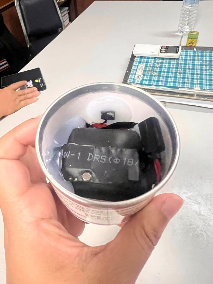 จากนั้นเมื่อเข้าไปฉี่ในห้องน้ำ เพื่อนก็เลยแกล้งปิดไฟในห้องน้ำ ก่อนจะสังเกตว่ามีไฟออกมาจากกล่องในภาพ เมื่อแกะดูเหมือนมันจะเป็นกล้อง จึงนำหลักฐานตามไปที่โรงพัก คนก่อเหตุปฏิเสธว่าไม่ใช่กล้อง เอาไว้ชาร์จแบตฯ ไอแพดตอนเข้าห้องน้ำ ไม่ได้เอาไปถ่าย ซึ่งตำรวจกู้ไฟล์ในโทรศัพท์ผู้ก่อเหตุมาก็พบหลักฐานเป็นวิดีโอที่แอบถ่ายส่งเข้าไปเป็นภาพโป๊ของนักกีฬา