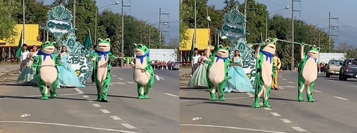 ชาวเน็ตเอ็นดู สีสันพาเหรดกีฬาสี ดรัมเมเยอร์น้องกบเขียว น่ารักจนขโมยซีนทั้งขบวน