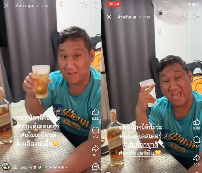 ขณะที่เจ้าของคลิปดังกล่าวลงคลิปแบงค์กระดกเหล้าจนหมดขวด พร้อมระบุแคปชั่นว่า "30,000 มันพอค่ารักษาตับเปล่าวะ" ซึ่งภายหลังแบงค์หมดสติถูกนำส่งโรงพยาบาล พบว่าเจ้าของโพสต์ได้ทำการลบคลิปดังกล่าวออกไปแล้ว