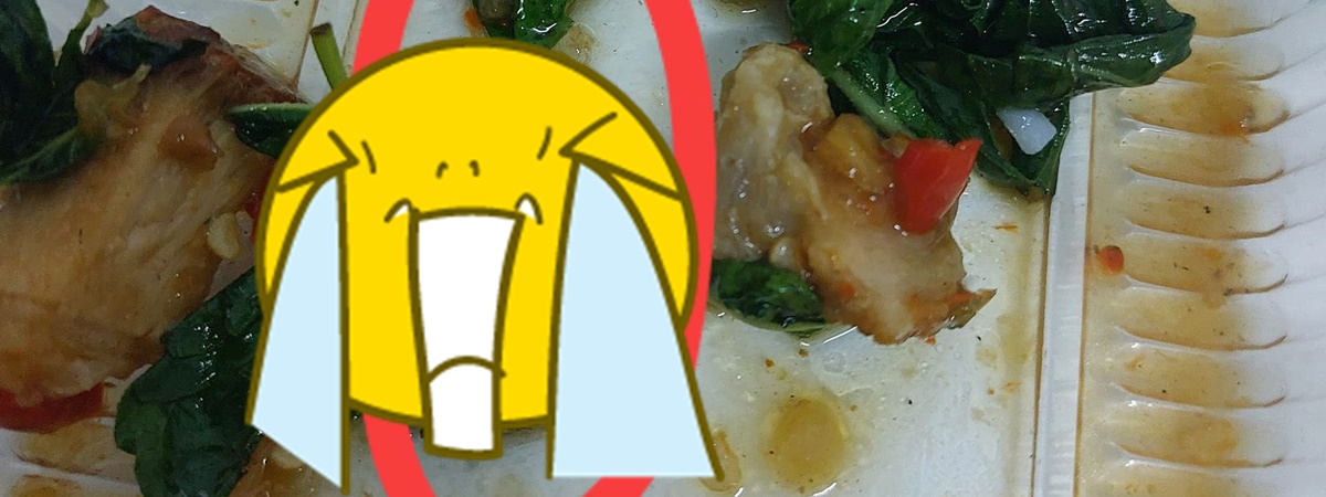 อ้วกแทบพุ่ง กินข้าวกะเพราเกือบหมดกล่อง เจอของแถมชวนสยองปนมาด้วย