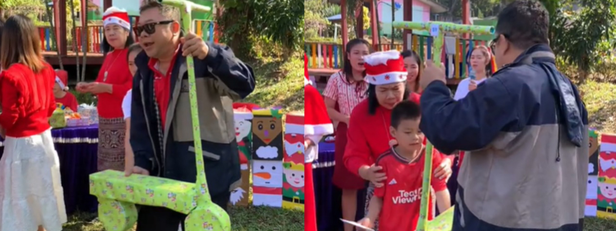 ผู้ใช้ TikTok @cielfah ได้เผยภาพเด็กชายคนหนึ่ง จับฉลากของขวัญปีใหม่ ได้สกูตเตอร์กลับไปขี่เล่นที่บ้าน หลังจากที่แกะของขวัญ สิ่งที่ได้กลับไม่ใช่สกูตเตอร์ แต่เป็นพวกกล่องลังและขนม พร้อมท่อน้ำมาประกอบกันให้ดูเหมือนสกูตเตอร์ เจอแกล้งแบบนี้ ถึงกับสิ้นหวังทันที ชาวเน็ตต่างคอมเมนต์ว่า เด็กก็มีความคาดหวัง แต่เจอผู้ใหญ่เล่นกับความรู้สึกเด็ก สงสารเด็กแทน