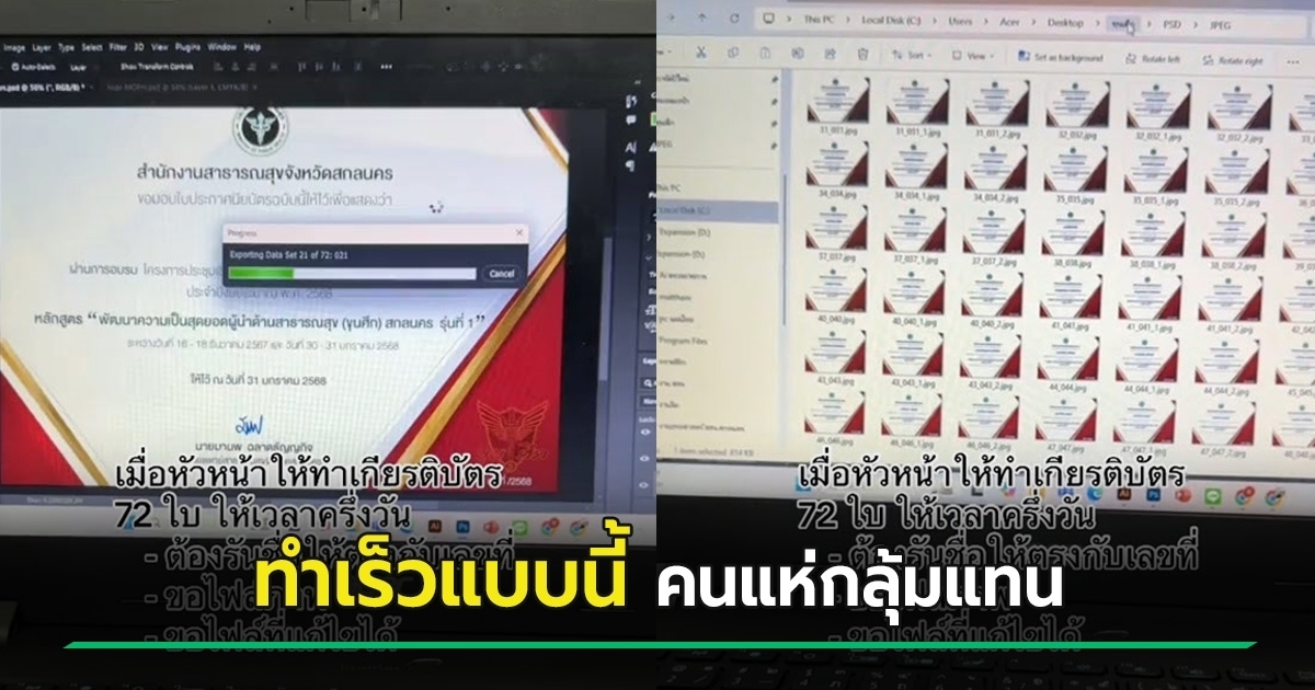 สาวรีวิว หัวหน้าสั่งงานทำเกียรติบัตร 72 ใบ เป็นไฟล์ภาพ และแก้ไขได้ ให้เวลาครึ่งวัน แต่ทำเสร็จได้ใน 30 นาที