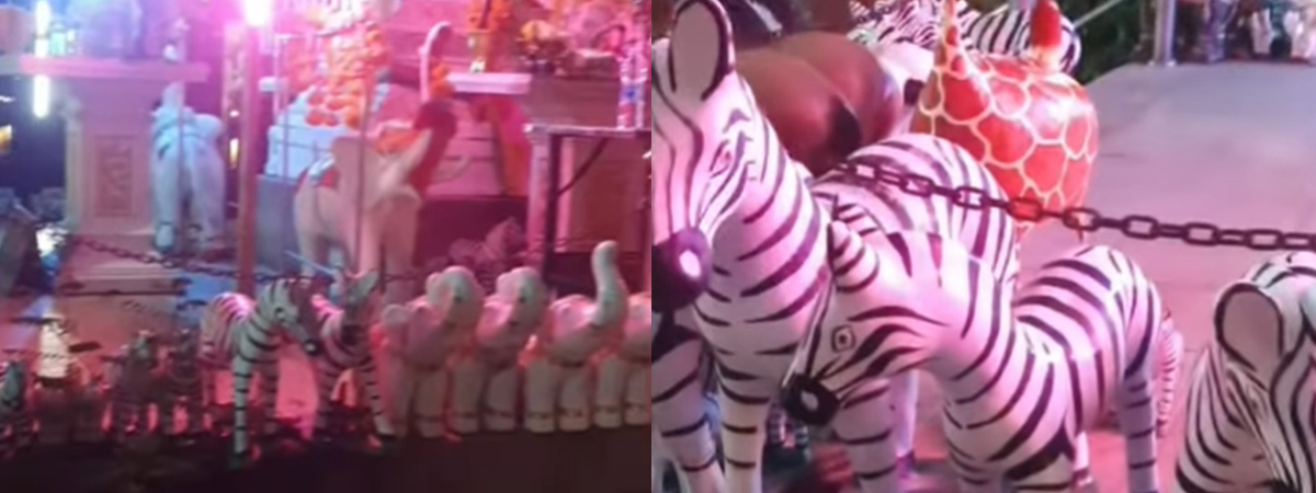 สิ่งศักดิ์สิทธิ์ต้องเห็น ตุ๊กตาแก้บนแบบใหม่ มียีราฟตัวหนึ่ง ดูแปลก ๆ ไปจากตัวอื่น