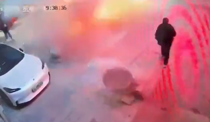คลิปวิดีโอจากกล้องวงจรปิดที่อยู่ในบริเวณที่เกิดเหตุแถวจินกุ้ยพลาซ่า ย่านชุมชนหลงสุ่ย สามารถบันทึกภาพเหตุการณ์เอาไว้ได้ โดยแสดงให้เห็นว่า เมื่อวันที่ 27 มกราคม ที่ผ่านมา เวลาประมาณ 19.40 น. เด็กหญิงคนหนึ่งได้เข้าไปนั่งยอง ๆ จุดประทัดใส่ท่อระบายน้ำ ซึ่งมีทั้งน้ำ น้ำมัน และแก๊สที่หมักหมมจากของเสีย โดยในขณะนั้นก็มีชาวเมืองคนอื่น ๆ เดินไปมาอยู่ไม่ไกลออกไปจากบริเวณนั้นด้วย