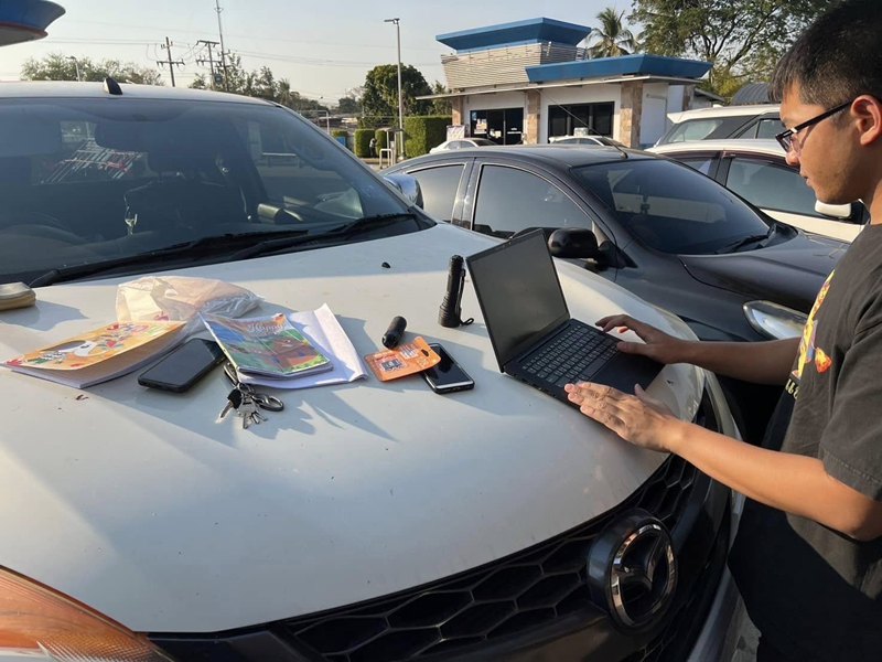 ต่อมามีการตรวจค้นรถกระบะ Mazda รุ่น bt50 สีขาว หมายเลขทะเบียน ผต 2903 อุดรธานี มีกระเป๋าถือสีดำ 1 ใบ, สมุดจดบันทึกข้อมูลสมาชิกกลุ่มลับ 1 เล่ม, โน้ตบุ๊ก Lenovo สีดำ ทะเบียนพัสดุ "อบต.ตูมใต้ 416-65-0045" จำนวน 1 เครื่อง ของทั้งหมดนี้ล้วนเกี่ยวข้องกับการกระทำความผิด