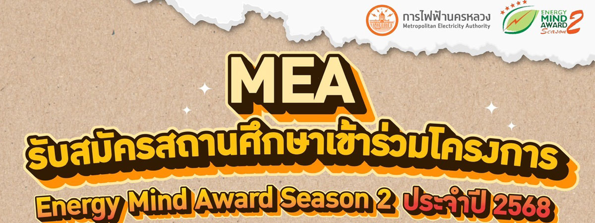 MEA หรือ การไฟฟ้านครหลวง เปิดรับสมัครสถานศึกษาในพื้นที่ความดูแลของ MEA ได้แก่ กรุงเทพมหานคร นนทบุรี และสมุทรปราการ เข้าร่วมโครงการ Energy Mind Award Season 2 ประจำปี 2568 เพื่อเฟ้นหาต้นแบบสถานศึกษาคาร์บอนต่ำ ตามมาตรฐานสถานศึกษาดีเด่น ด้านพลังงาน ของ MEA ชิงเงินสนับสนุนการดำเนินงานด้านการอนุรักษ์พลังงานและสิ่งแวดล้อม กว่า 1 ล้านบาท