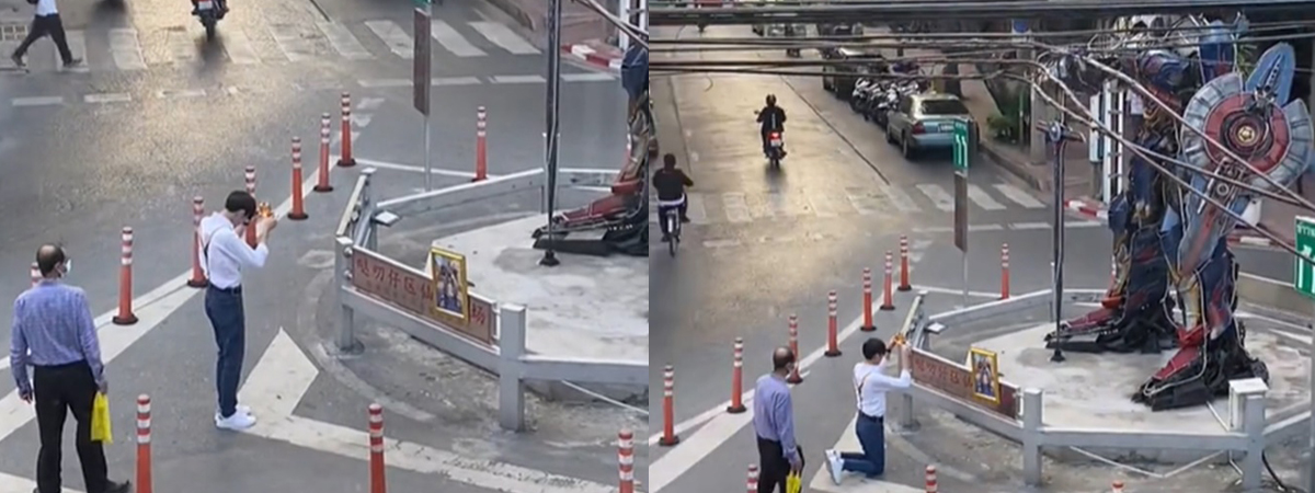 ผู้ใช้ TikTok @hypnotized.bar ได้เผยภาพหนุ่มคนหนึ่ง เพิ่งเปิดร้านในกรุงเทพฯ เพื่อเสริมสิริมงคลให้กับร้าน อยากให้ลูกค้ามาเยอะ ๆ เลยเอาของไปถวายบูชาสิ่งศักดิ์สิทธิ์ ตั้งเด่นสง่าอยู่ใจกลางกรุงเทพฯ สิ่งศักดิ์สิทธิ์ที่ว่าคือพ่อปู่ออพติมัส หรือออพติมัส ไพรม์ หุ่นยนต์จากหนังเรื่อง ทรานส์ฟอร์เมอร์ส ไหว้แบบจริงจัง จนทำเอาผู้คนที่เดินผ่าน ต้องหยุดยืนดูทันที