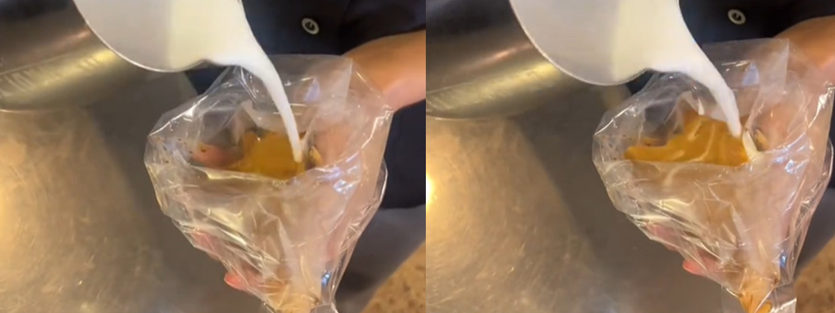 ผู้ใช้ TikTok @edencafe_ ได้เผยภาพตอนที่ลูกค้าสั่งกาแฟลาเต้ร้อน ขอแบบใส่ถุงกลับบ้าน บาริสต้าเลยจัดให้ตามที่ลูกค้าสั่ง โดยเริ่มจากเทกาแฟใส่ถุง ต่อด้วยเทนมเป็นลายแบบอาร์ต ๆ พอมัดถุงเท่านั้นแหละ ความฮาจึงบังเกิด ถึงกับตั้งคำถามในหัวว่า จะทำแบบนี้ไปเพื่ออะไร