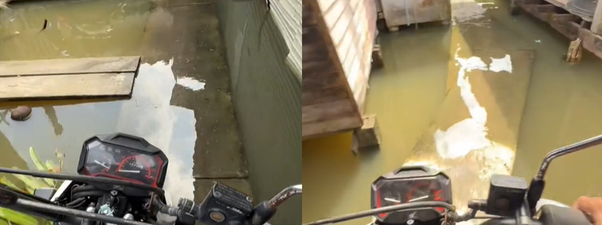 ผู้ใช้ TikTok @stopwolfblack ได้เผยภาพหนุ่มชาวสุราษฎร์ธานีกำลังขี่มอเตอร์ไซค์กลับบ้าน แต่สิ่งที่ทำชาวเน็ตนั่งลุ้นนั้นคือทางเข้าบ้านนี่แหละ ทั้งถนนแคบและน้ำท่วมในบางพื้นที่ กว่าจะเข้าบ้านได้พากันลุ้นจนตัวเกร็ง ถ้าไม่ชำนาญทางจริงคงมีพลาดตกแน่ ๆ