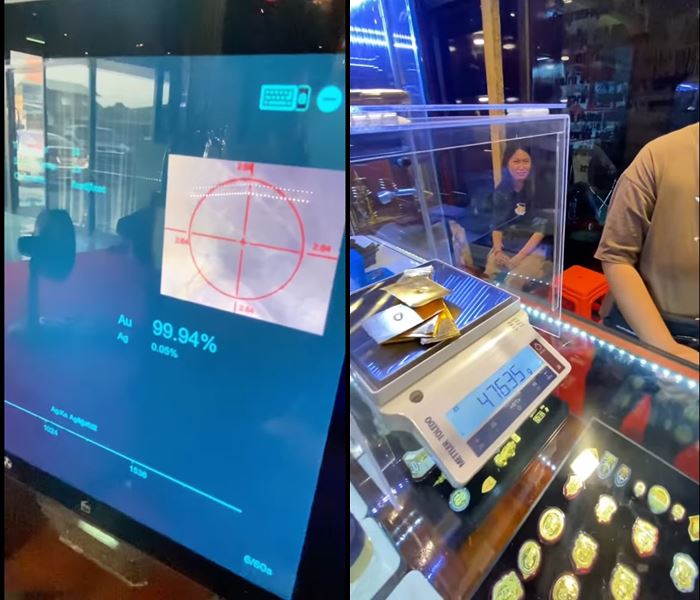 โดยคุณนะโมลองตรวจสอบดูจากตาเปล่าค่อนข้างมั่นใจว่าน่าจะเป็นทองจริง ซึ่งเมื่อนำทองไปตรวจผ่านเครื่องเอกซเรย์ พบว่าเป็นทองคำ 99% ซึ่งไม่ค่อยพบเห็นในไทย เป็นอะไรที่โชคดีมาก ๆ เพราะตั้งแต่เปิดร้านมาไม่เคยเจอทองแบบนี้เลย