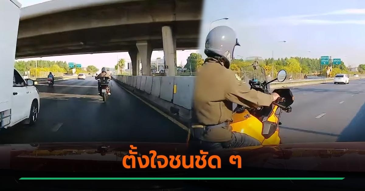 เก๋งหัวร้อน ปรี๊ดเห็นมอไซค์ขี่เลนขวา ขับจี้บีบแตรรัว ๆ ก่อนพุ่งชน เจ้าตัวไม่สลดแม้ทัวร์ลง วอนควายอย่าสะเหล่อตัดสิน