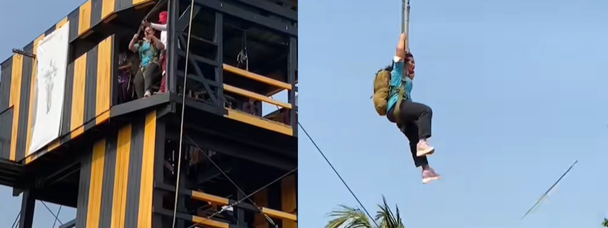 ผู้ใช้ TikTok @hippo26.80 ได้เผยภาพครูสาวท่านหนึ่ง กำลังเตรียมโดดหอที่ค่ายทหาร ระหว่างที่กำลังลงมานั้น ส่วนใหญ่จะส่งเสียงกรี๊ด หลับตา หรือไม่ก็จับสายแน่น ๆ เพื่อป้องกันความกลัวของตัวเอง แต่สำหรับครูท่านนี้ เล่นรำลงมาเลยทีเดียว ราวกับว่าตัวเองเป็นนางเมขลา จินตนาการมาเต็มยิ่งกว่าใครซะอีก