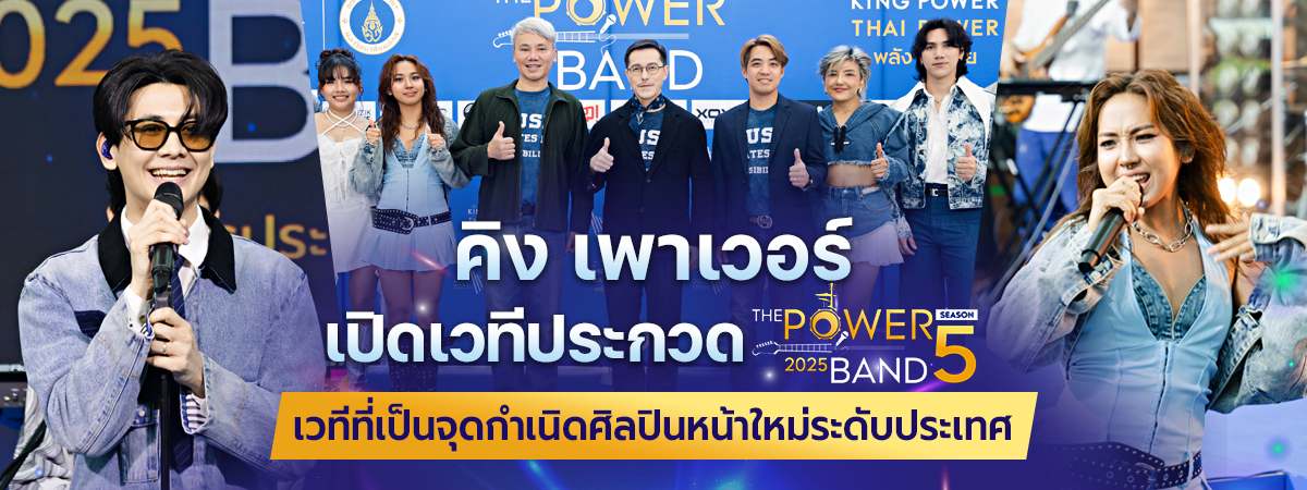 กลับมาอีกครั้งเพื่อตอกย้ำความสำเร็จของเวทีประกวดวงดนตรีสากลคุณภาพระดับประเทศประจำปี 2568 “THE POWER BAND 2025 SEASON 5” โดย คิง เพาเวอร์ ไทย เพาเวอร์ พลังคนไทย ร่วมมือกับวิทยาลัยดุริยางคศิลป์ มหาวิทยาลัยมหิดล ผนึกกำลังกับ 8 ค่ายเพลงชั้นนำอย่าง Muzik Move, LOVEiS Entertainment, Smallroom, What The Duck, Warner Music Thailand, XOXO Entertainment เสริมทัพด้วย 2 ค่ายเพลงใหญ่อย่าง YUPP! Entertainment และ Universal Music Thailand ที่จะมาร่วมเฟ้นหาดาวรุ่งดวงใหม่ เรียกได้ว่าเป็นปรากฏการณ์ครั้งสำคัญที่รวมแมวมองจากค่ายเพลงดังมากที่สุดในประเทศ พร้อมด้วยพันธมิตร ได้แก่ บริษัท สิงห์ คอร์เปอเรชั่น จํากัด, T-POP STAGE, นิตยสาร The Guitar MAG, บริษัท สยามดนตรียามาฮ่า จำกัด และ Multiply by Eight ที่ร่วมให้การสนับสนุนพลังทางดนตรี ภายใต้คอนเซ็ปต์ “MUSIC CREATES MORE POSSIBILITIES พลังดนตรี เป็นไปได้ ไม่สิ้นสุด” ชิงรางวัลรวมกว่า 2 ล้านบาท พร้อมร่วมทำซิงเกิลกับโปรดิวเซอร์มืออาชีพ และโอกาสในการร่วมแสดงในเทศกาลดนตรีระดับประเทศ