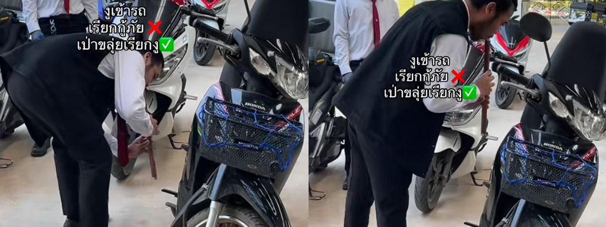 งูจะออกไหมล่ะเนี่ย เมื่องูเข้าไปในรถมอเตอร์ไซค์ แต่สิ่งที่ทำ นึกว่าเรียกกู้ภัยมาช่วย