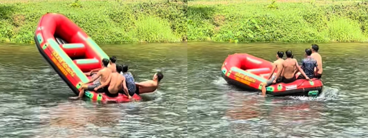 ผู้ใช้ TikTok @jaopank ได้เผยภาพสาวมาเที่ยวพักผ่อนที่นครนายก เจอแก๊งหนุ่มกำลังล่องแก่งกลางน้ำ แต่สิ่งที่ทำเอาเธอละสายตาไม่ได้ คงจะเป็นวิธีการพายเรือนี่แหละ ในเมื่อไม่มีไม้ให้พาย ก็ต้องใช้แรงตัวเองนี่แหละ พากันนั่งท้ายเรือ แล้วใช้แรงดันให้เรือขยับ ลุ้นเลยว่าเรือจะล่มไหม ผลก็เป็นไปตามคาด ไปทั้งคนและเรือ งานนี้พากันฮาสนั่นโซเชียล