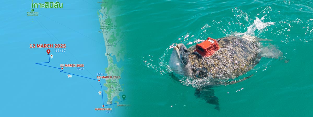 เมื่อวันที่ 13 มีนาคม 2568 เฟซบุ๊ก Theerasak Saksritawee ได้รายงานว่าพบคุณปู่เป้แดง เดินทางถึงเกาะสิมิลันแล้ว ในระยะเวลา 5 วัน คุณปู่ว่ายน้ำกว่า 200 กิโลเมตร สุดยอดมาก พร้อมฝากไปถึงคนเดินเรือให้ช่วยเฝ้าระวังปู่ด้วย สามารถสังเกตได้จากตอนคุณปู่ลอยตัวขึ้นมาหายใจ จะมองเห็นสีแดงบนกระดองเด่นมาก