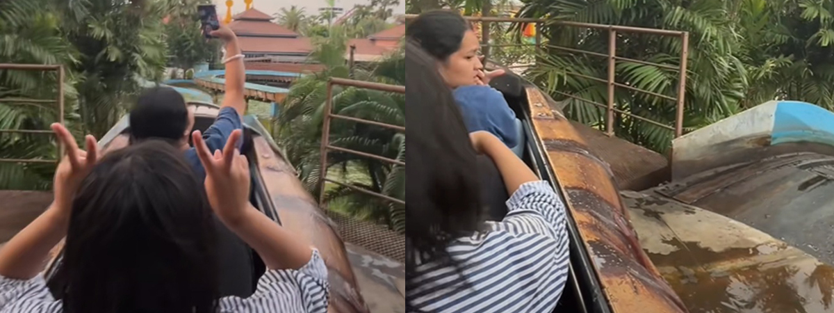 ผู้ใช้ TikTok @patsamonnnn ได้เผยภาพแก๊งสาวขึ้นเครื่องเล่นล่องแก่ง ในสวนสนุกแห่งหนึ่ง กำลังเตรียมพร้อมแล่นลงน้ำ ยังไม่ทันได้ลง อยู่ ๆ เครื่องก็ค้างซะงั้น ค้างนานจนต้องเรียกเจ้าหน้าที่มาช่วยดู ก่อนที่จะกลับมาเล่นได้เหมือนเดิม งานนี้ชาวเน็ตต่างพากันคอมเมนต์ เคยมีประสบการณ์เครื่องเล่นค้างแบบนี้เหมือนกัน