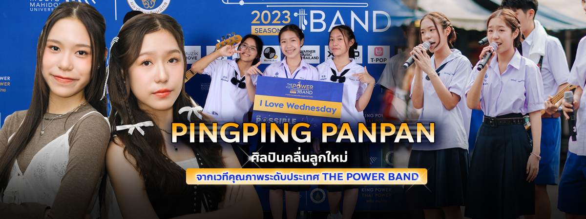 จากนักร้องเดินสายประกวดร้องเพลงตั้งแต่เด็ก สู่ศิลปินคลื่นลูกใหม่ PINGPING PANPAN (ปิ๊งปิ๊ง-ปันปัน) สองพี่น้องดูโอพราวเสน่ห์ ที่พกรอยยิ้มแสนหวานและความน่ารักสดใสมาเต็มเปี่ยม ล่าสุดปล่อยซิงเกิลแรก “ถูกจับได้ซะแล้ว” (SURRENDER) มาจับกระแส T-Pop บูม ! ภายใต้สังกัดค่าย Home Run Music เรียกได้ว่านี่คือผลผลิตที่มาจากเวทีประกวดวงดนตรีสากลคุณภาพระดับประเทศ THE POWER BAND จุดกำเนิดศิลปินหน้าใหม่ ที่สามารถสานฝันสู่การเป็นศิลปินอาชีพได้สำเร็จ ซึ่งพิสูจน์ให้เห็นแล้วว่า เวทีประกวดดนตรี คือบันไดสำคัญที่ทำให้ทุกความฝันทางดนตรีเป็นไปได้