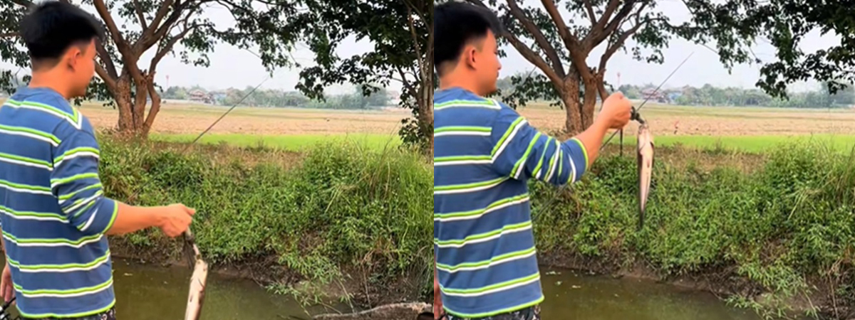 ผู้ใช้ TikTok @beer_thanakron ได้เผยภาพหนุ่มคนหนึ่ง ตกปลาได้มาหนึ่งตัว แล้วเห็นเด็กมานั่งตกปลาข้าง ๆ เลยอยากจะแบ่งปลาให้ แต่เด็กดันทำหน้างง ๆ ว่า พี่เขาจะเอาปลาที่ตกได้ มาแบ่งให้ทำไม หลังจากที่ได้เห็นตอนเจ้าหนูคนนี้ลุก งานนี้ถึงกับอึ้งไปเลยทีเดียว เพราะตกปลาได้เยอะกว่าที่คาดไว้ จากตอนแรกที่ขิงเด็ก กลับต้องมาอายเด็กแทน