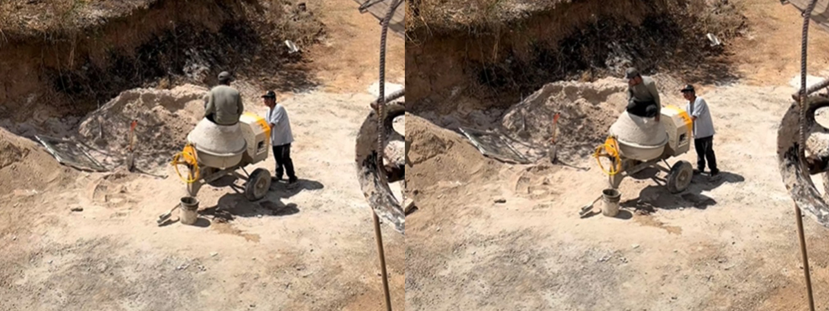 เข้าใจเล่นไปอีก วันว่าง ๆ ของวัยรุ่นก่อสร้าง เล่นเครื่องผสมปูน ราวกับตุ๊กตาหมุน