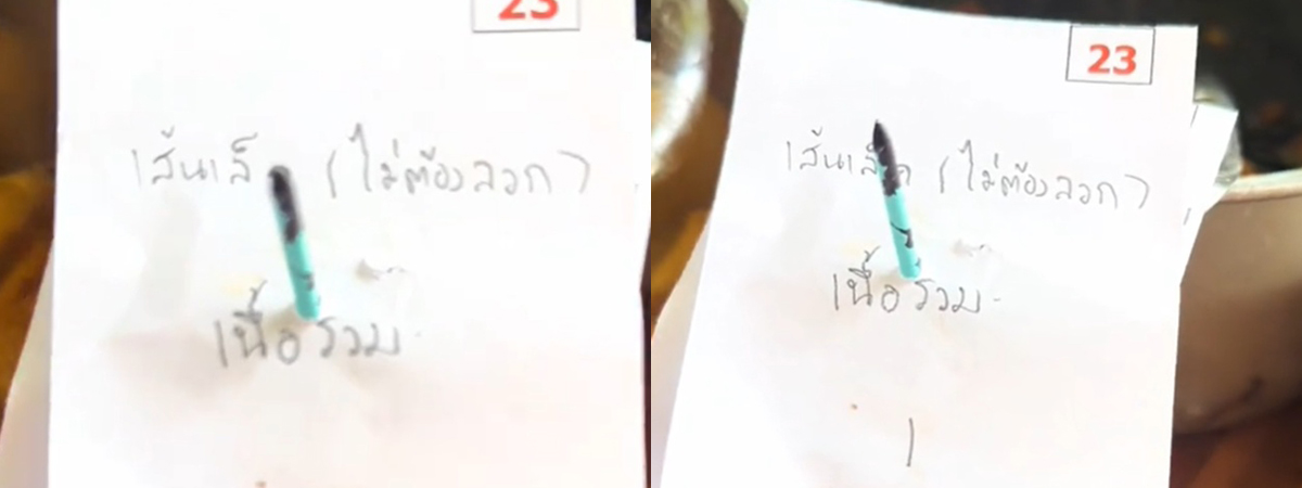 ผู้ใช้ TikTok @baannokbkk711 ได้เผยภาพแม่ค้าร้านก๋วยเตี๋ยวแห่งหนึ่ง เห็นใบออร์เดอร์ของลูกค้า สั่งเส้นเล็กเนื้อรวมนั่งกินที่ร้าน แต่มาสะดุดตรงไม่ลวกเส้นนี่แหละ แม่ค้าถึงกับยืนเกาหัวแรง ในเมื่อลูกค้าสั่งมาแบบนี้ แม่ค้าก็จัดให้ตามคำขอ ซึ่งมีคนชอบกินก๋วยเตี๋ยวแบบนี้เช่นกัน คอมเมนต์บอกว่า เส้นมันจะไม่นิ่มมาก แค่เอาน้ำซุปร้อน ๆ ราดลงไปกำลังดี