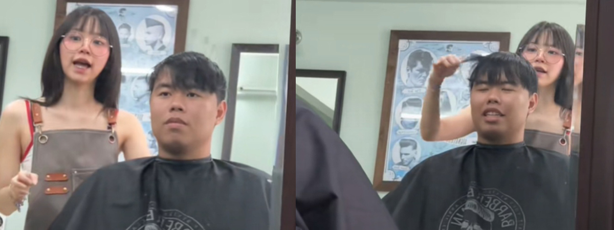 ผู้ใช้ TikTok @jt_basketman ได้เผยภาพหนุ่มคนหนึ่ง ไปตัดผมที่ร้านแถวนนทบุรี ระหว่างที่เตรียมตัดผม เห็นช่างที่มาตัดผมให้ เกือบเสียอาการในร้านเข้าแล้ว เพราะช่างสวยและน่ารัก เลยต้องนั่งนิ่งแก้เขิน หลังจากที่มีการแชร์บนโลกโซเชียล ชาวเน็ตต่างหาพิกัดเพียบ พร้อมอยากจองคิวตัดผมล่วงหน้า