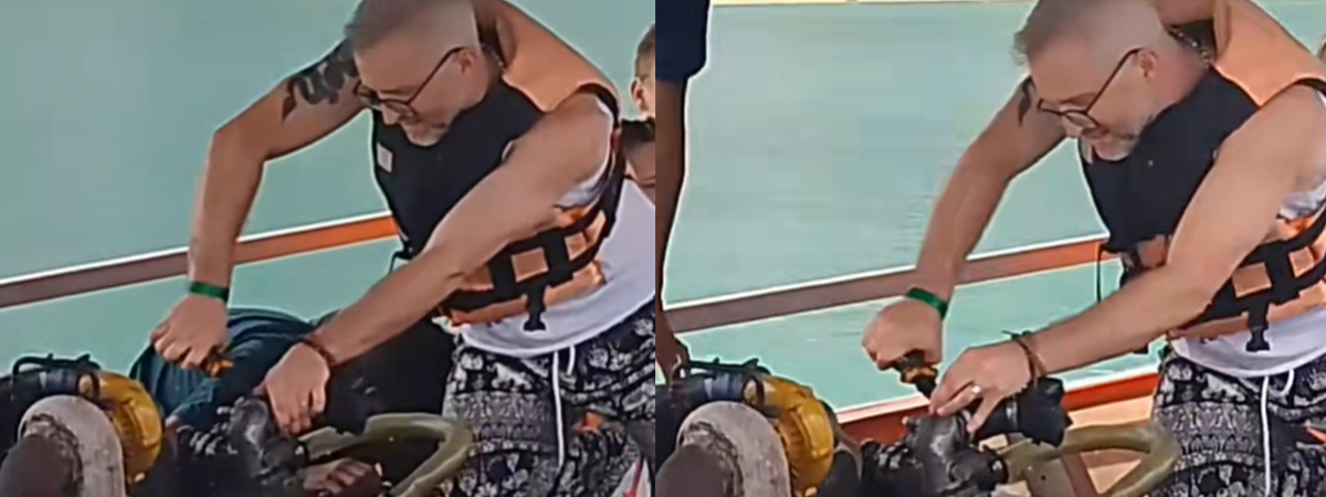 ผู้ใช้ TikTok @kralwutchuhamat ได้เผยภาพกลุ่มนักท่องเที่ยวต่างชาติ ล่องเรือในเขื่อนเชี่ยวหลาน สุราษฎร์ธานี อยากชมความงดงามของทะเล แต่ดันเกิดเหตุเรือเสียกลางทาง มีนักท่องเที่ยวชายคนหนึ่ง สวมบทเป็นช่างซ่อม ทำให้เรือกลับมาวิ่งได้ปกติ อุตส่าห์มาเที่ยวพักผ่อน ยังต้องทำงานอีก สมกับโครงการ Work and Travel จริง ๆ