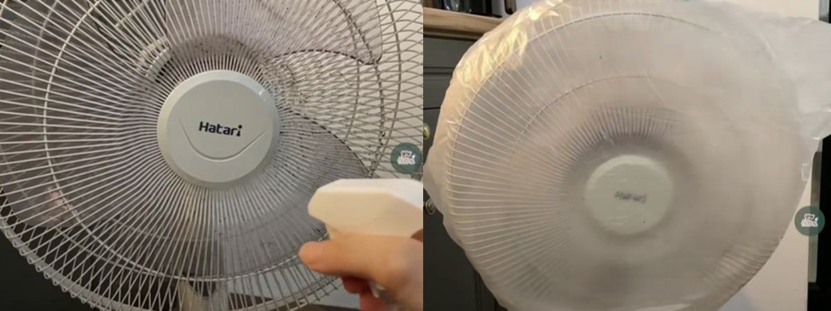 ผู้ใช้ TikTok @youkubbaan ได้เผยภาพวิธีล้างพัดลมตามสไตล์คนขี้เกียจ ไม่อยากถอดและประกอบใหม่ให้เปลืองเวลา เลยใช้สูตรโกงในการล้าง เริ่มจากใส่น้ำยาล้างจานเข้าไปในขวดสเปรย์ ตามด้วยน้ำส้มสายชูและเบกกิ้งโซดา จากนั้นให้ฉีดทั่วพัดลม แล้วคลุมถุงเปิดพัดลม 5 นาที เพียงเท่านี้คราบฝุ่นก็ออกจากพัดลม และช่วยให้สะอาดขึ้นเช่นกัน