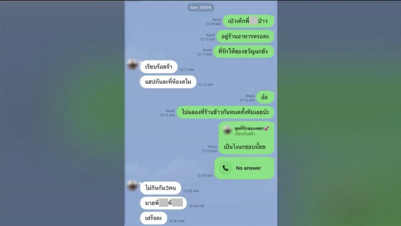 - วันที่ 5 เมษายน ยังมีการคุยกับมายด์ตามปกติผ่านไลน์ แต่รู้สึกแปลก ๆ เพราะมายด์บอกว่าอยู่ที่สโมสร แต่การค้นหา Find My Phone อยู่ที่คอนโดพระราม 9 หลังจากนั้นตนก็นั่งแท็กซี่เพื่อไปจุดเกิดเหตุที่อยู่ที่นั่น แล้วพยายามล่อซื้อมายด์ด้วยการถามว่า มายด์อยู่ไหน แต่ตนอยู่ที่ใต้คอนโดพระราม 9 หัวใจอยู่ที่ตาตุ่ม นั่งรออยู่ที่ล็อบบี้