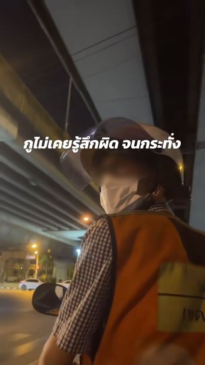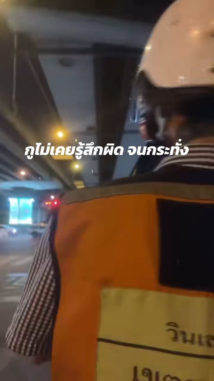 หนุ่มซ้อนมอเตอร์ไซค์ พี่วินหันมาพูดสั้น ๆ ตอนติดไฟแดง ด่าหยาบให้นั่งดี ๆ หน่อย เจ้าตัวเฉลยแล้วมันเกิดอะไรขึ้น