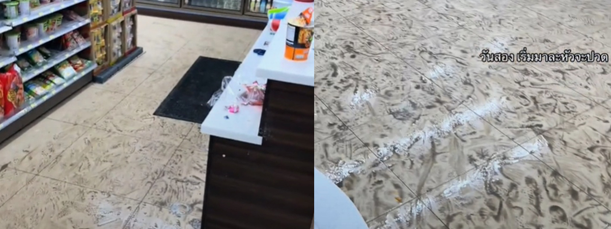 พนักงานกำหมัดแล้ว เผยสภาพร้านเซเว่นในช่วงสงกรานต์ เห็นข้างในอย่างกับป่าชายเลน