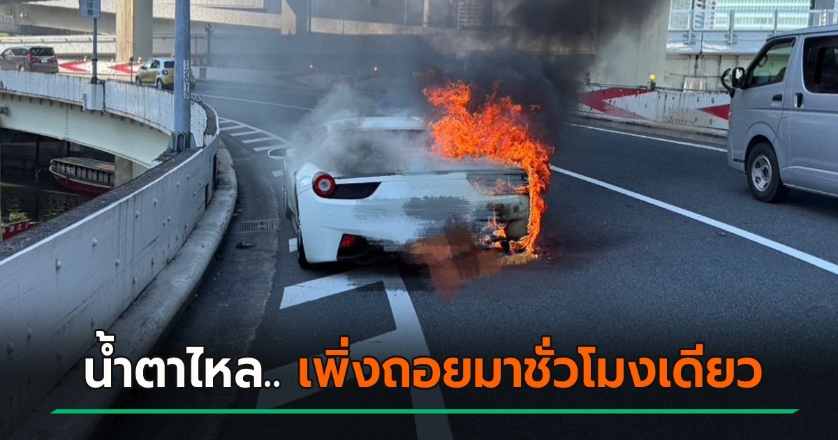ระทึกขวัญกลางถนน รถเฟอร์รารี่หรูไฟไหม้ เผาวอดกลายเป็นซาก เจ้าของสะเทือนใจหนัก เพิ่งถอยมาได้แค่ 1 ชั่วโมง
