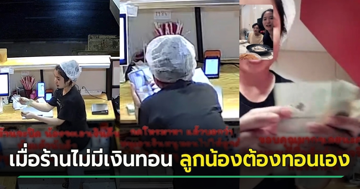 กระทั่งตอนร้านจะปิด น้องก็จะเอาเงินคืน 300 บาท ก่อนที่จะคืน ก็มีการนับแล้วนับอีก โชว์ให้เห็นในกล้องว่า หยิบไป 300 บาทจริง ๆ นะ