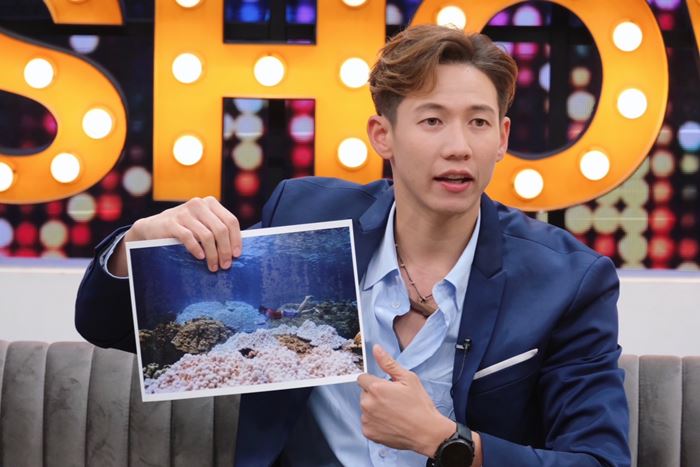 "ภาพที่ผมถ่าย นี่คือการฟอกขาวของปะการัง พี่ดูมันขาวเกือบหมด เหลือแค่หย่อม ๆ 20 เปอร์เซ็นต์ นี่คือการฟอกขาวก่อนที่มันตาย"