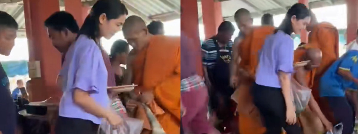 ผู้ใช้ TikTok @koysawvarod ได้เผยภาพบรรดาญาติโยม เดินหยิบของถวายพระหลังทำบุญเสร็จ ซึ่งเป็นธรรมเนียมของภาคใต้ ที่สามารถทำแบบนี้ได้ เดินหยิบอาหารราวกับเป็นบุฟเฟต์เลยทีเดียว แต่มีหญิงสาวท่านหนึ่ง ระหว่างที่เดินหยิบ ดันลื่นจนเกือบฉีกขา ก่อนลุกขึ้นยืนยังได้ของกินติดมือมาด้วย นี่แหละพลิกวิกฤตให้เป็นโอกาสของจริง